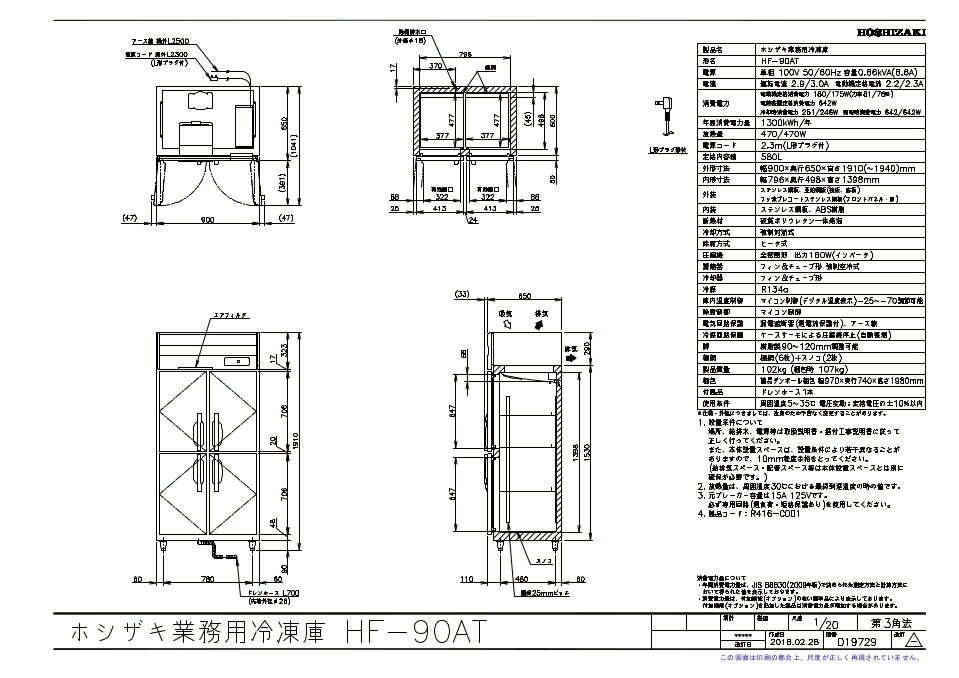 【電 源】単相100V (50/60Hz)【外形寸法】幅900×奥行650×高さ1910(mm) 【内形寸法】幅796×奥行498×高さ1398(mm)【庫内温度】-25〜-7℃調節可能【定格内容積】580リットル【消費電力】冷却時251/246W 霜取時642/642W【製品質量】102kg★