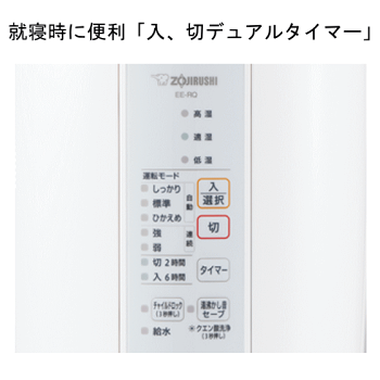 ◎入、切デュアルタイマー 入タイマーは6時間、切タイマーは2時間、 それぞれ個別に選択できます。